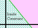 b. above and to the right of an inside constraint